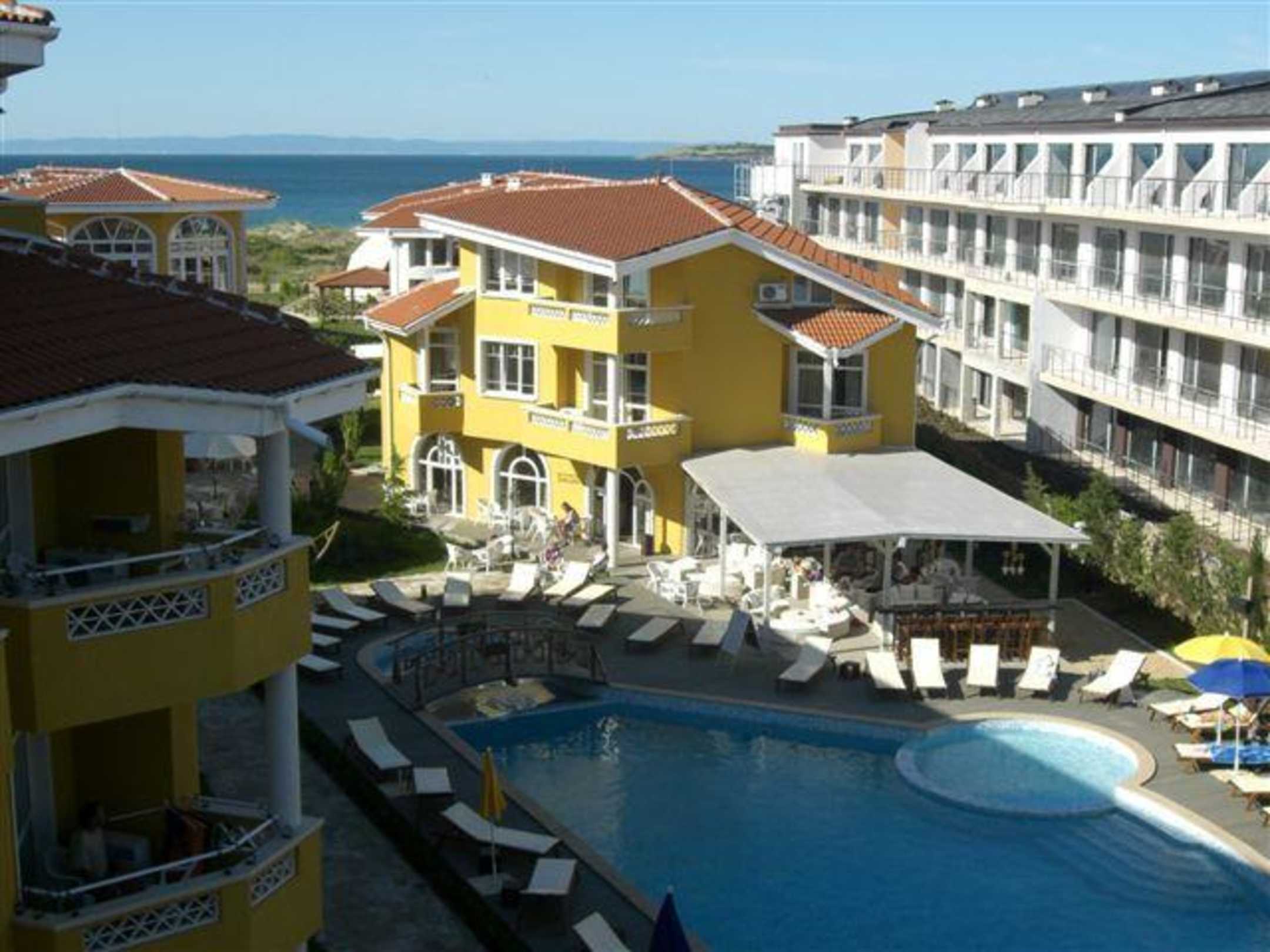 Blick auf den Pool und den Strand