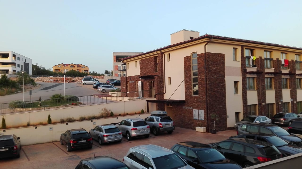 Rezeption und Parkplatz