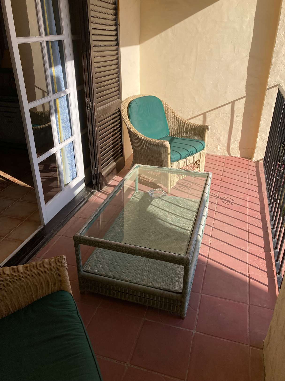 Großer Balkon mit Sicht auf die Seitenstraße