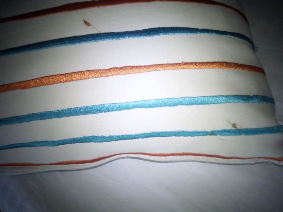 Altes Blut am Dekokissen vom Bett