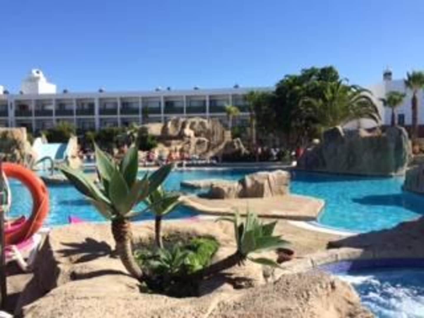 Pool mit Felsen und Rutsche