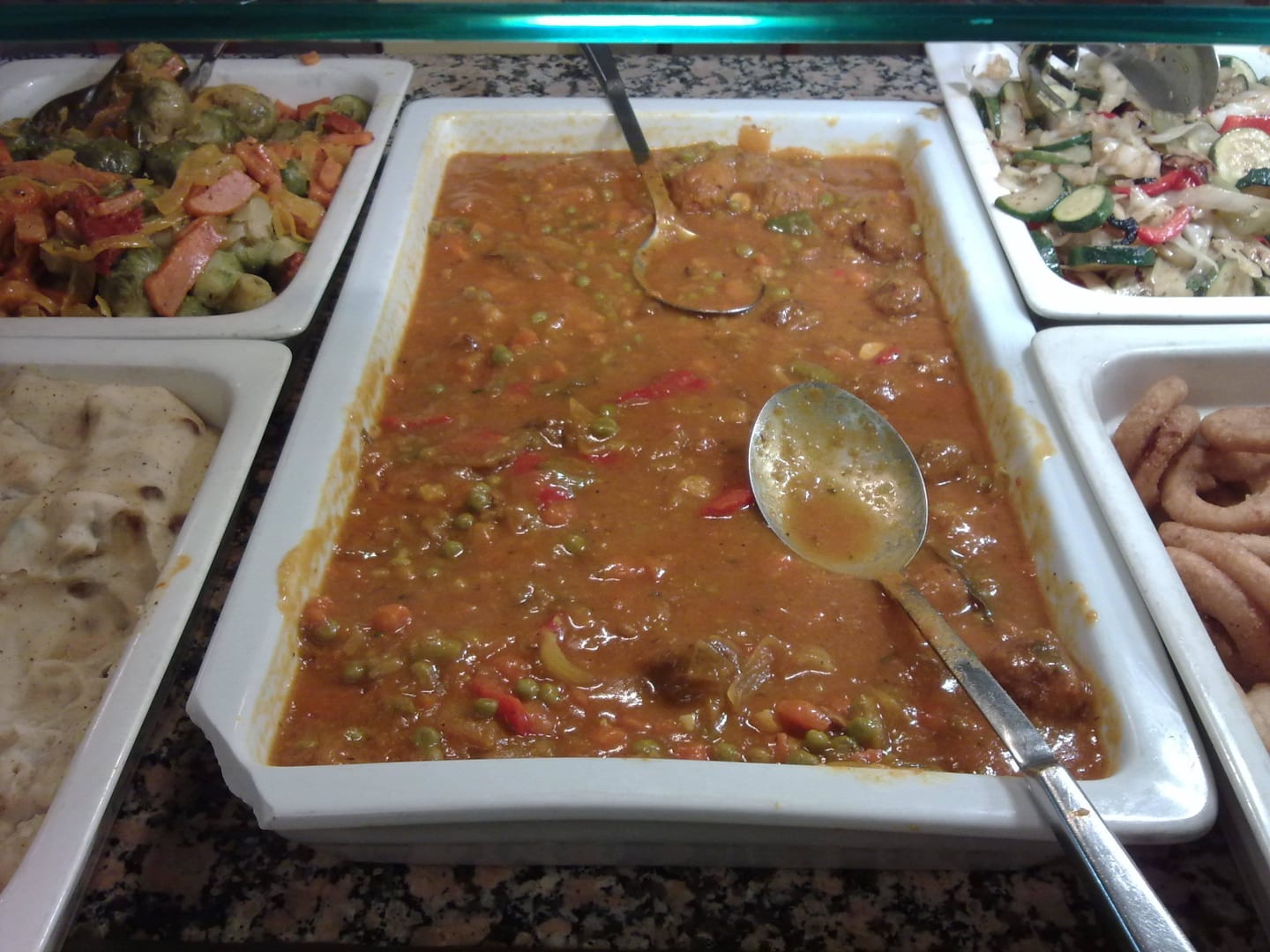 Fleischklopse mittig im Bild, das sollen Fleischklopse sein, sieht nach Eintopf allerlei aus.