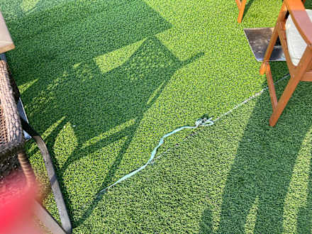 Im Aussenbereich Grasteppich mit Stolperfallen und voll von Katzenpisse