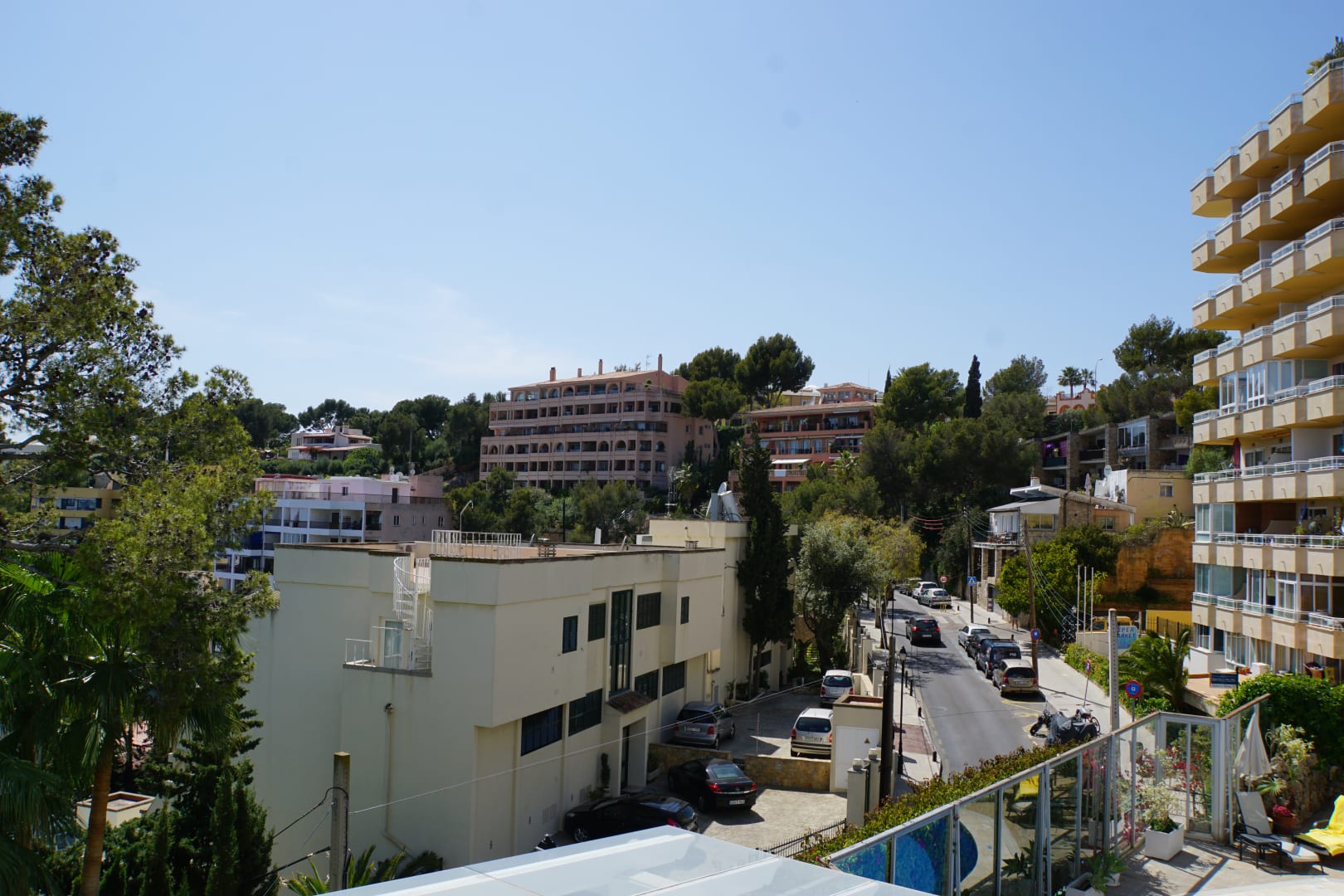 Blick vom Balkon auf die umliegende Bebauung
