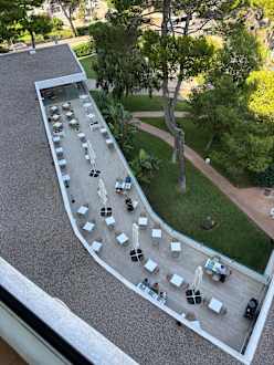 Blick auf Außenterasse des Restaurants