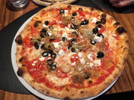 Pizza mit Feta und Oliven aus dem Holzofen