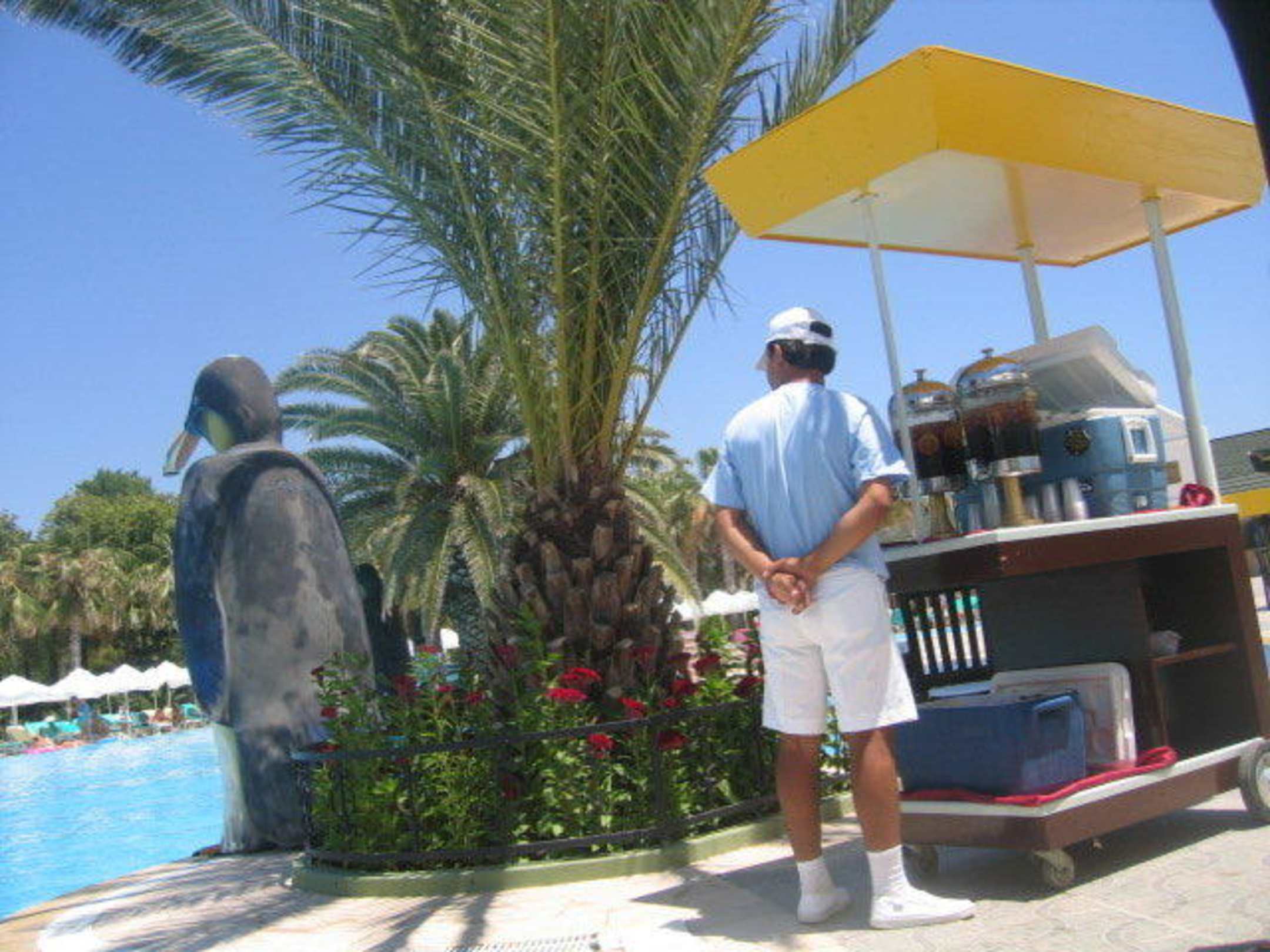 Dieser Angestellte verteilt Getränke am Animationspool