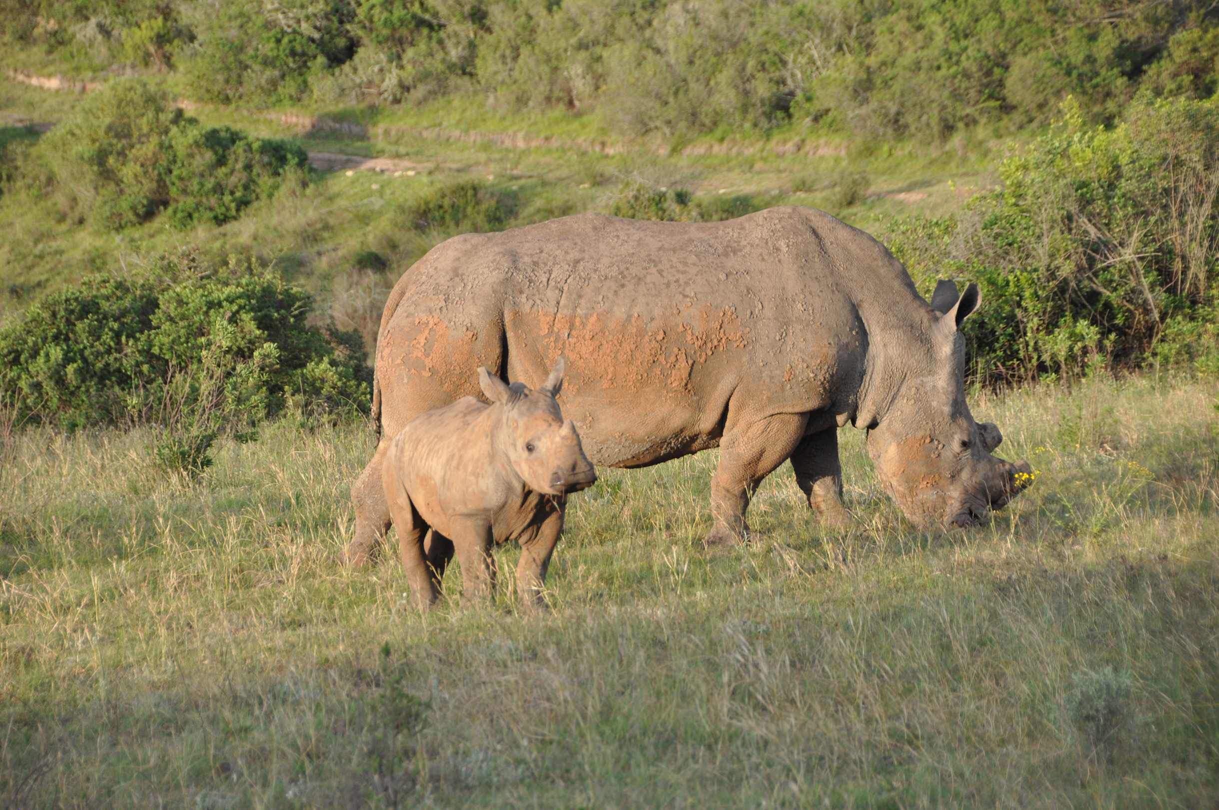 Rhino mit Nachwuchs beim Game Drive