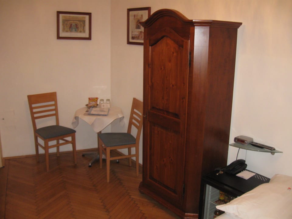 Sitzgelegenheit und Schrank im Zimmer