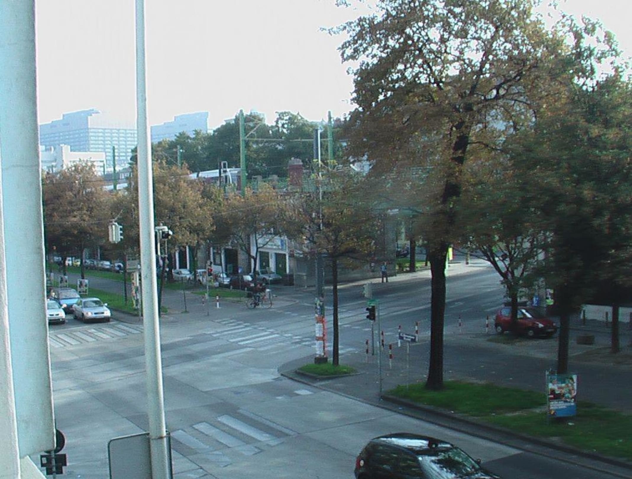 KreuzungEin Blick aus dem Fenster auf die vor dem Hotel befindliche Kreuzung, die bis spät in die Nacht befahren ist.