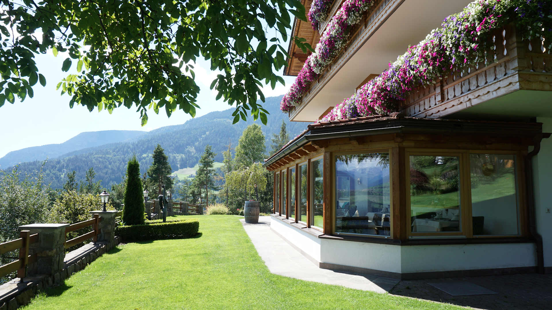 Der Wintergarten mit seinem fantastischen Blick auf die Bergwelt gegenüber
