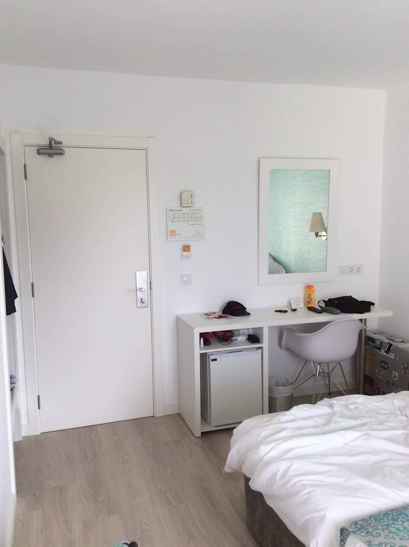 Schminktisch mit Kühlschrank als einzige Ablage