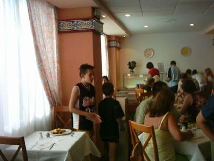 Blick in den Speisesaal, im Hintergrund ein Stück vom Kinderbuffet