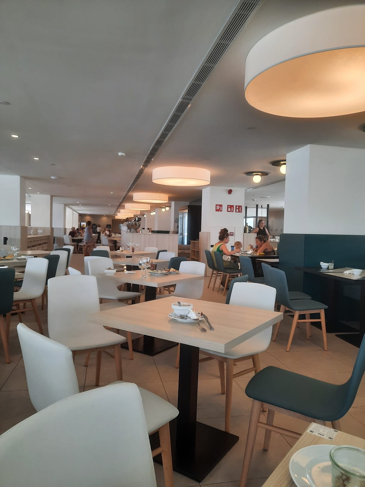 Restaurant um 14:00 Uhr. Weniger Gäste als am Morgen und am Abend. Meist nur AI-Gäste am Mittag.