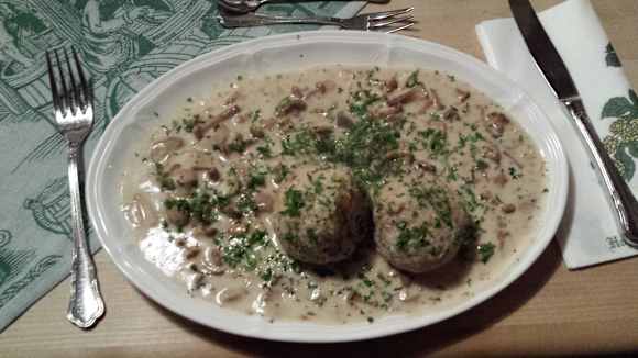Hausgemachte Semmelknödel mit frischen Pilzen