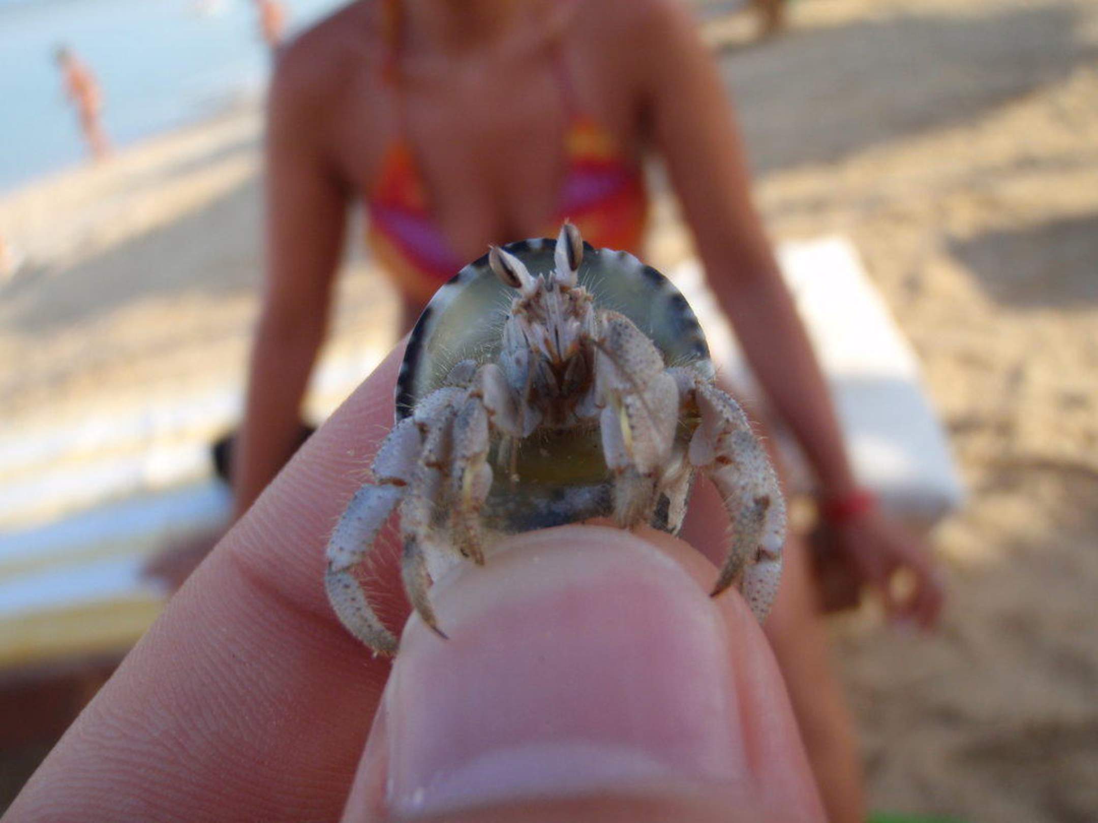 Zrób mi zdjęcieJeden z wielu krabików, jakie spacerują sobie po plaży. Fajnie się ich wypatruje leżąc bezsilnie na leżaczku ;)