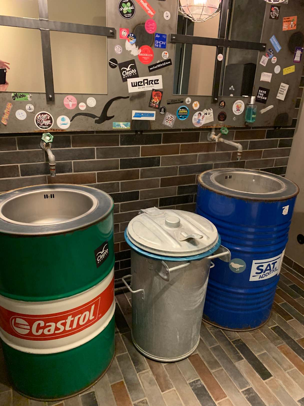 Kreativ gestaltete Waschbecken im UG.