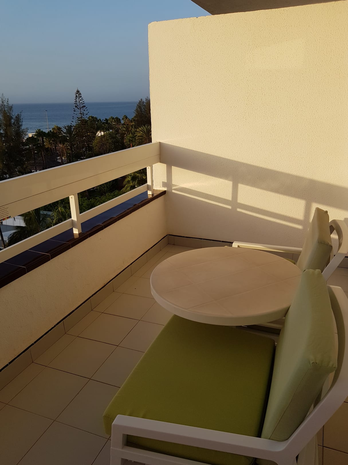 Balkon mit 2 Stühlen/Polster und einem Tisch