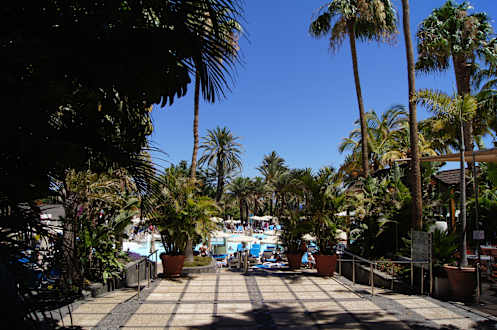 Blick vom Hotel zum Pool