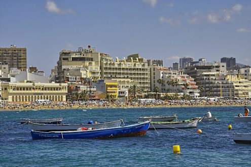 Panorama von der Lage des Hotels Reina Isabel am Strand von Playa de Las Canteras.