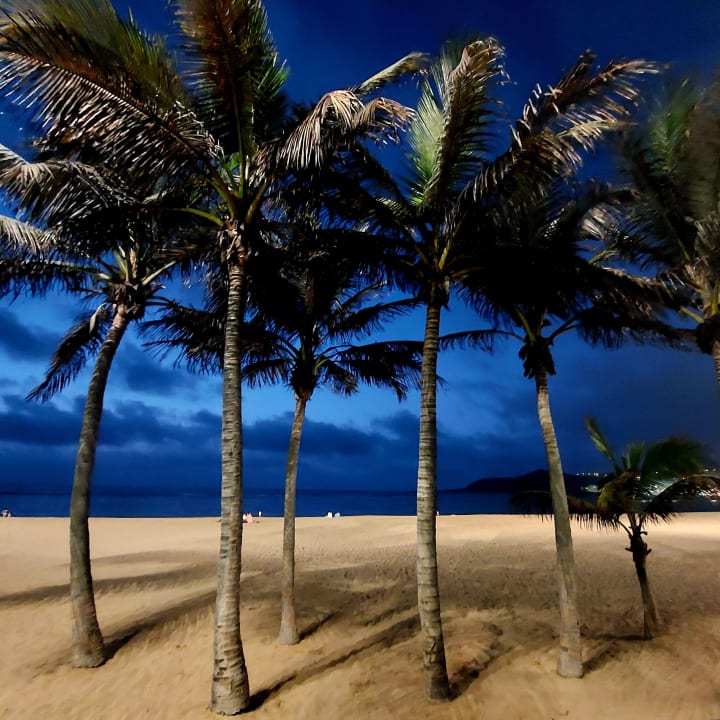 Bei Nacht vor dem Hotel