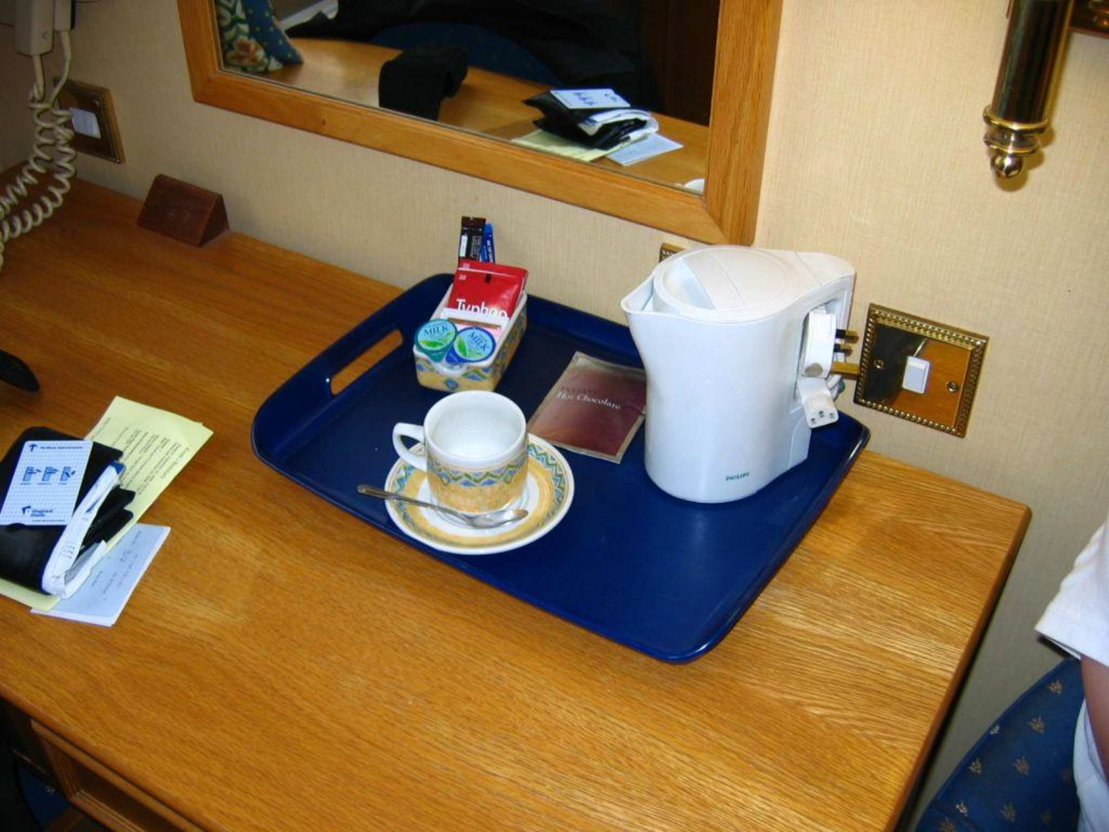 Tisch im Zimmer mit Wasserkocher