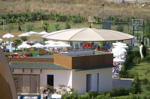 Blick zum überdachten Kinder-Pool (mit Pilz)