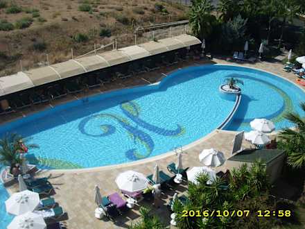 Blick vom Zimmer auf den Pool - Nebengebäude