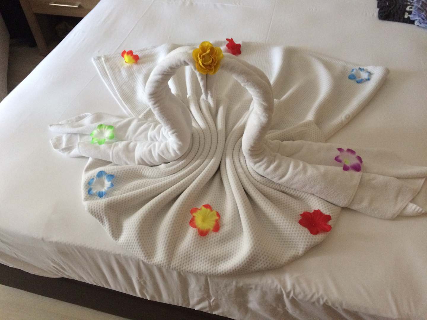 Bettwäsche und Handtücher schön hergerichtet.