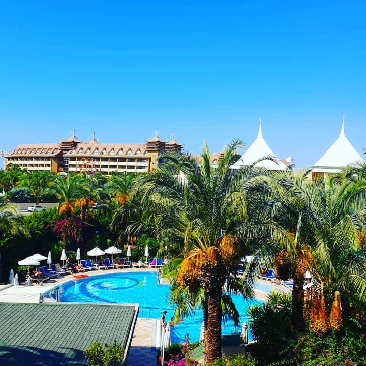 Blick vom Zimmer auf den Ruhepool