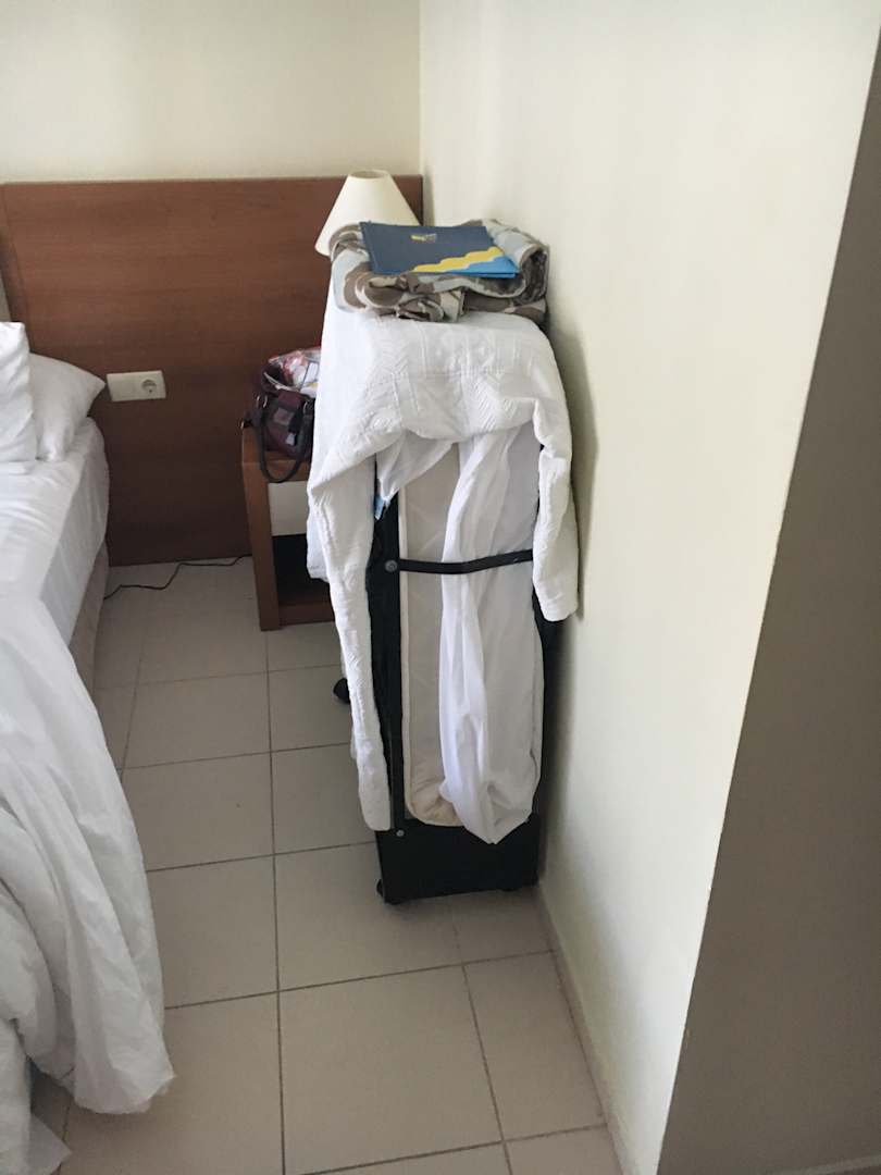 ZimmerZustellbett obwohl wir nur zu 2 waren (obendrauf die schmutzige Tagesdecke)