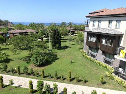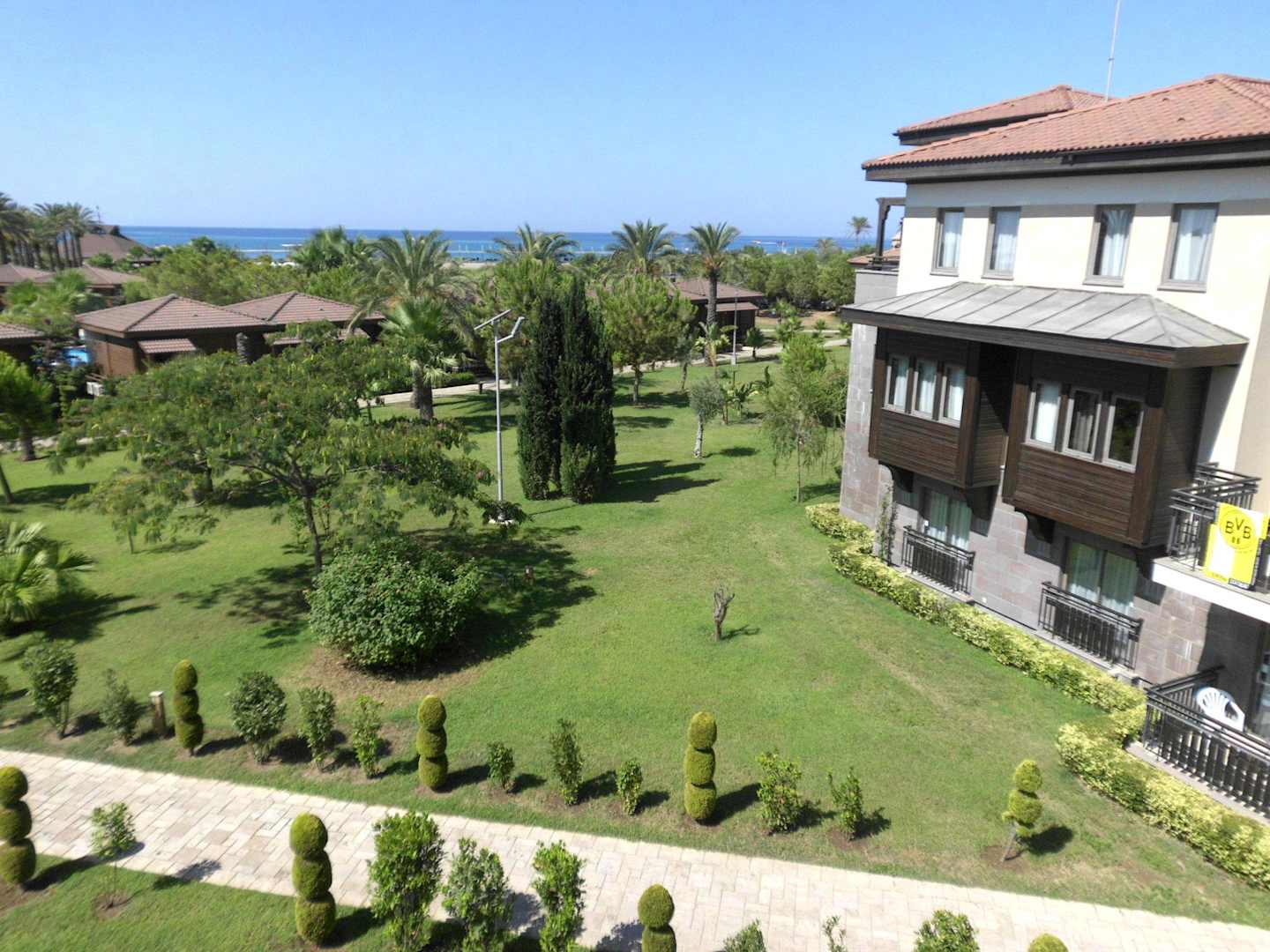 Toller Ausblick auf Palmen, Meer und Gartenanlage