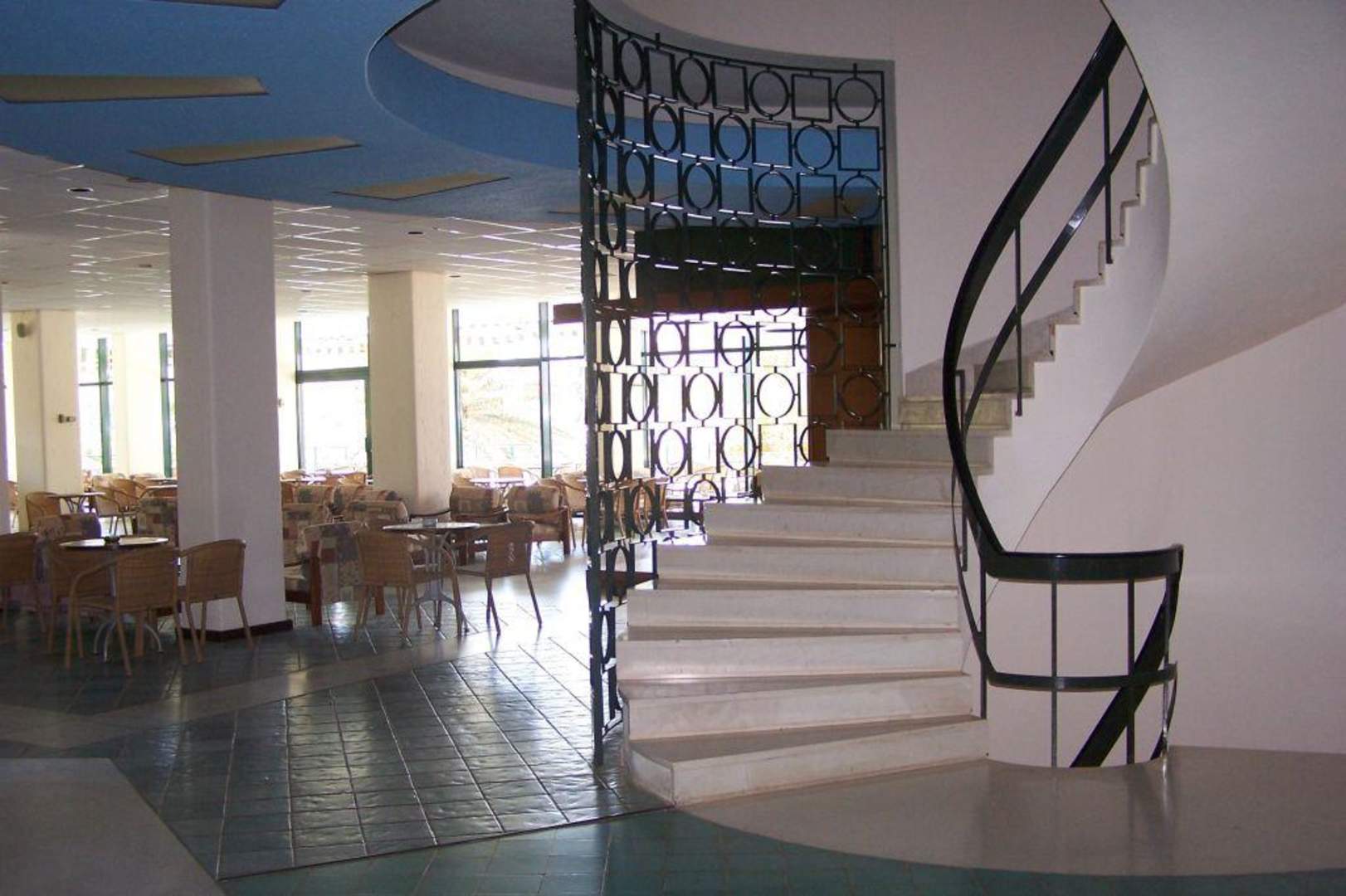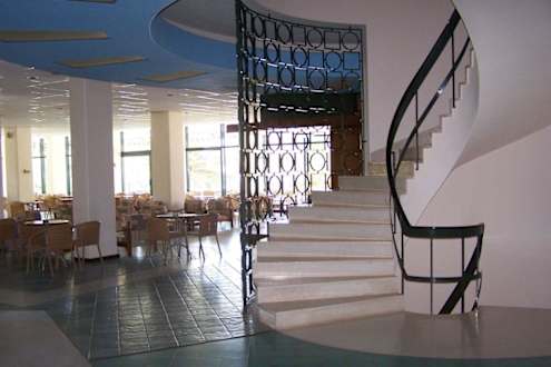Hoteltreppe und Bar im Hintergrund