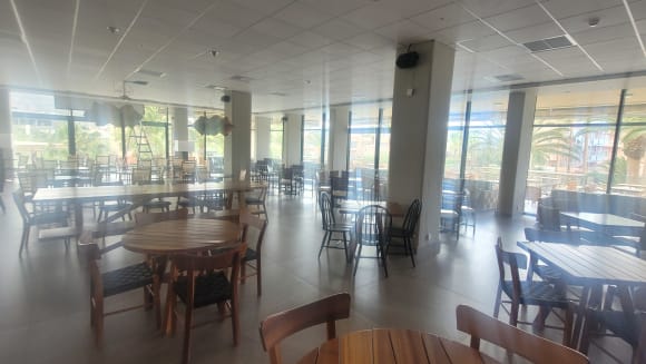 Die Bar, kalt und ungemütlich. Wie ein Aufendhaltsraum in einer Jugendherberge