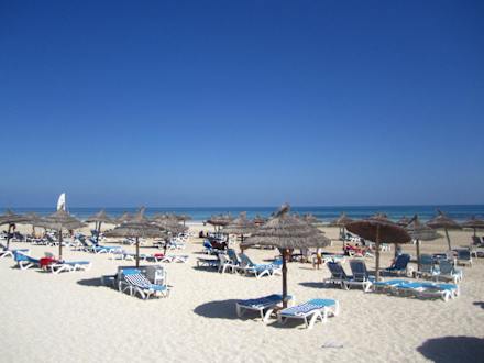 Strand mit Liegen