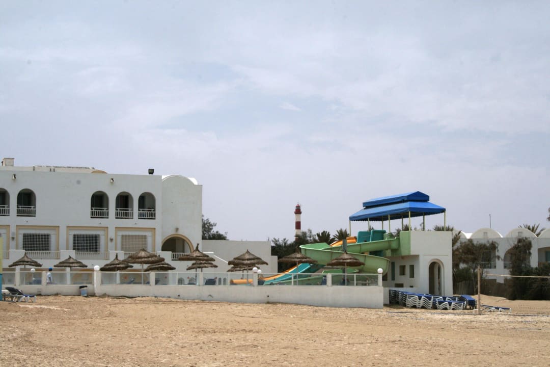 Blick auf Pool und Rutschen