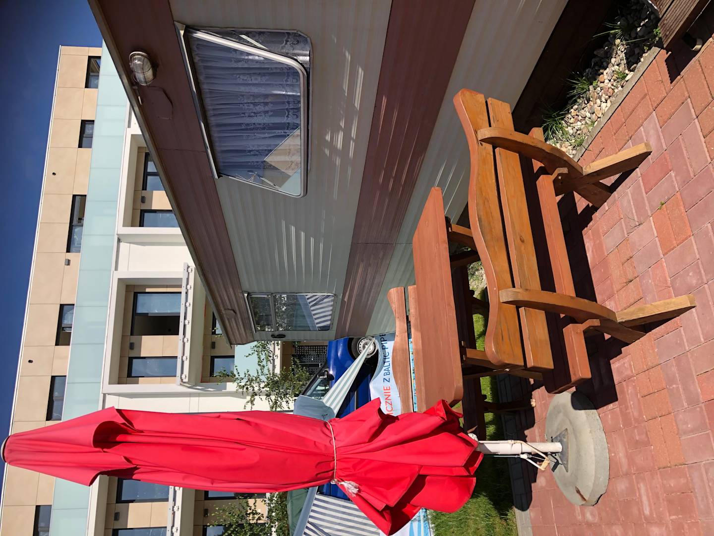 Esstisch mit Sonnenschirm