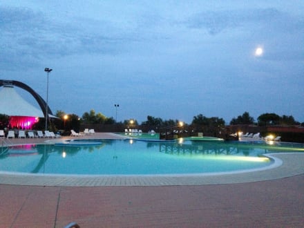 Poolanlage am Abend