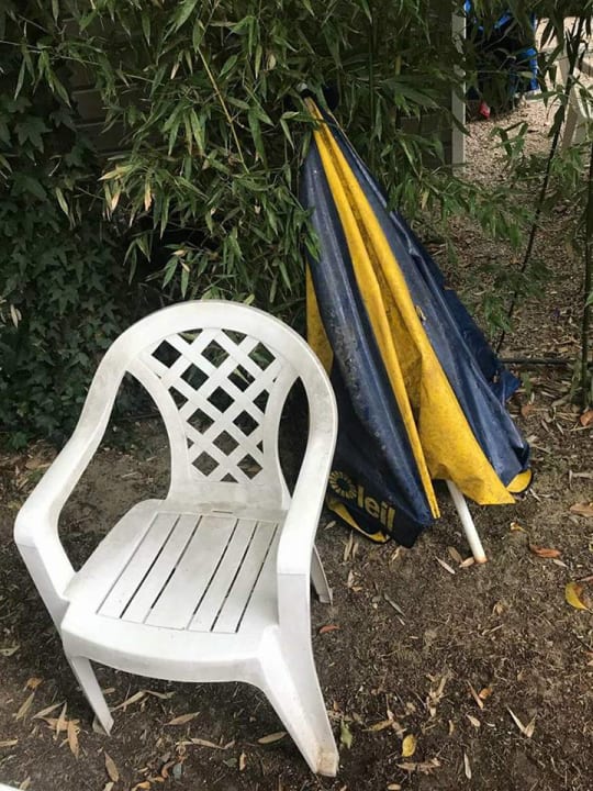 Der Stuhl war nicht mehr sauber zu bekommen, geschweige denn der Schirm....