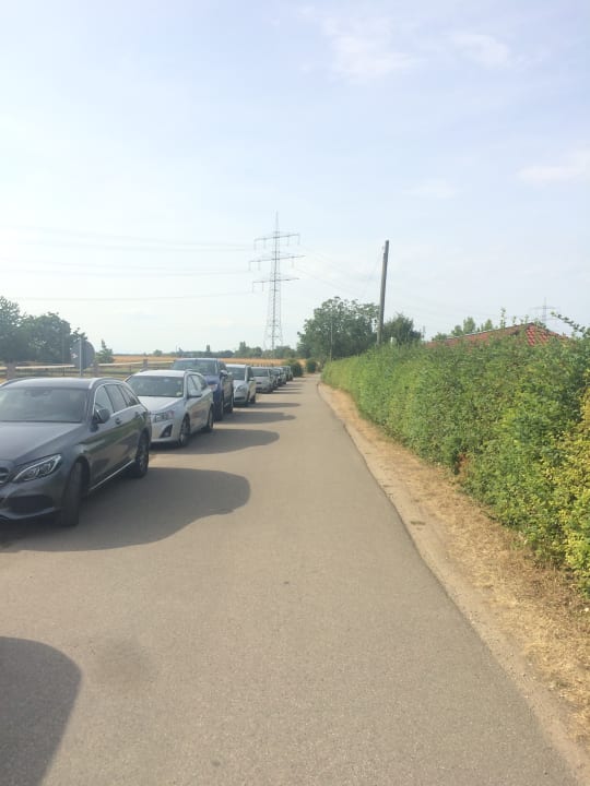 Straße beim Campingplatz, im Sommer oft durch Badegäste zu geparkt