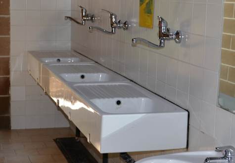 Waschbecken für GeschirrBei den Waschbecken ist hinten in der Fuge überall Schimmel und ist daher ganz schwarz.
