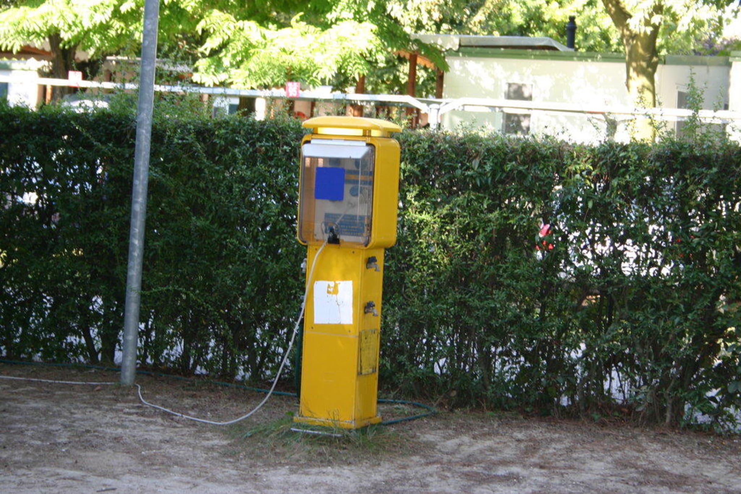 So sieht eine Typische Versorgungseinheit für Wasser und Strom aus. Die Sicherungen sind auf der Rückseite, jedoch abgeschlossen und nur von Mitarebeitern des Platzes zu benutzen.