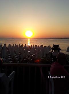 während des Abendessen sind wunderschöne Sonnenuntergänge auf der Außenterrasse zu sehen