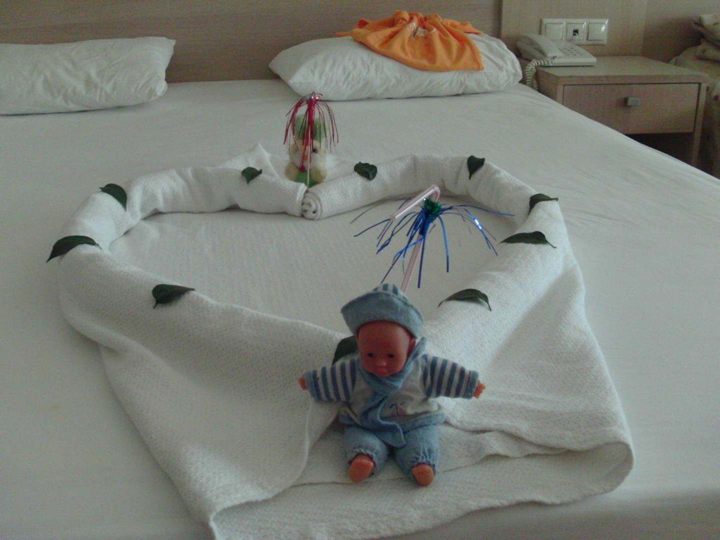 von den Zimmerfrauen sehr liebevoll gestaltetes Bett