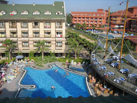 Blick zum Pool und ala card Fisch-Restaurant