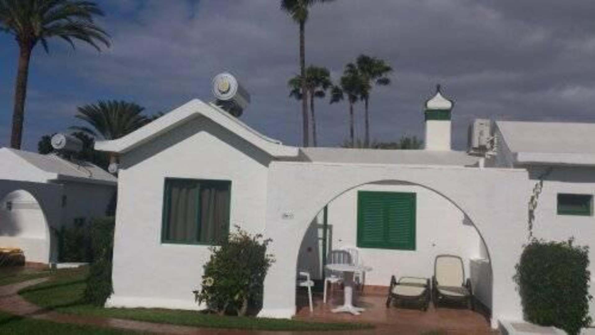 Der Blick auf unseren Bungalow mit großem Garten davor zum Sonnen !!!