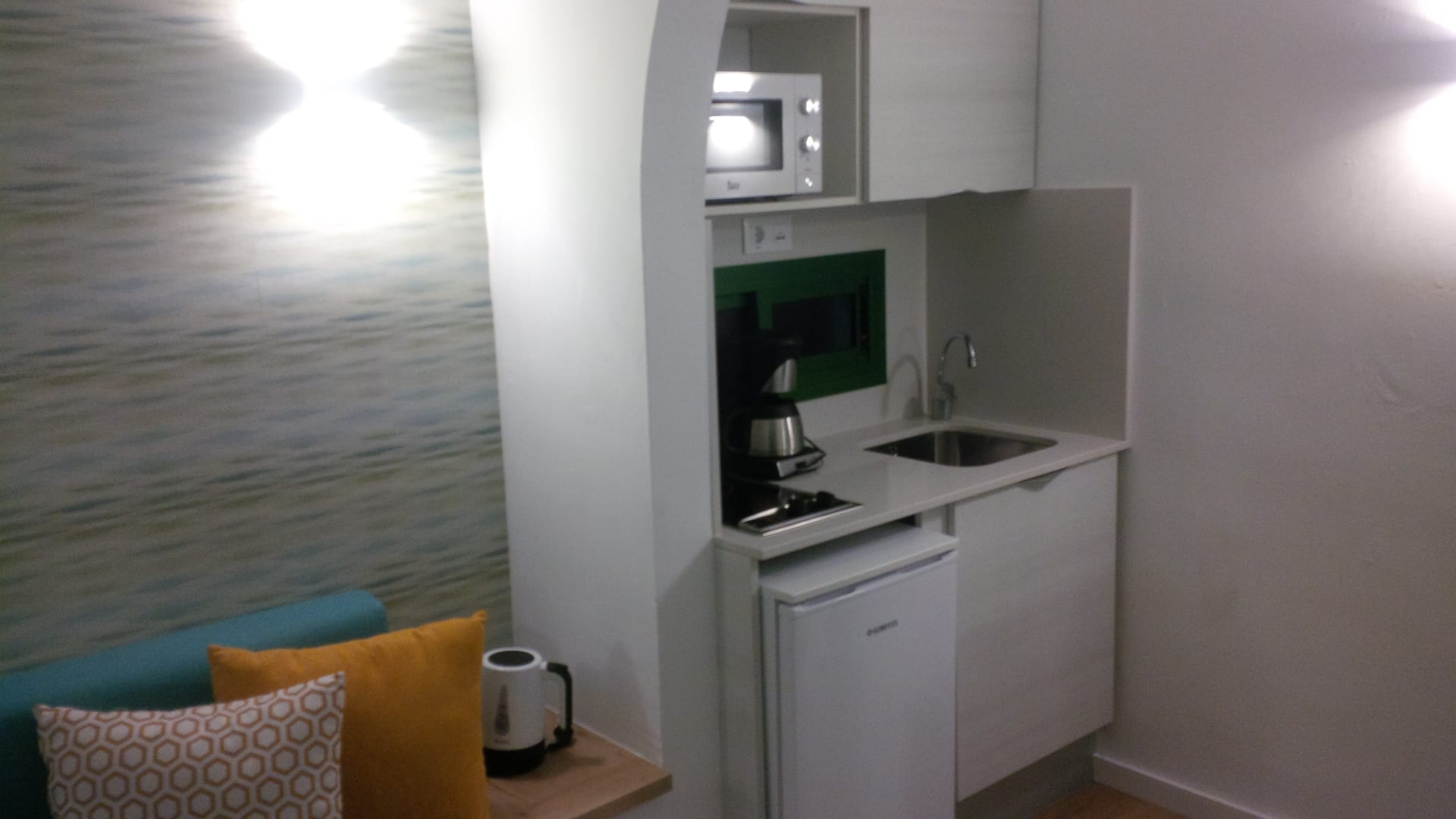 kleine Küchenzeile im Wohnraum des Bungalows