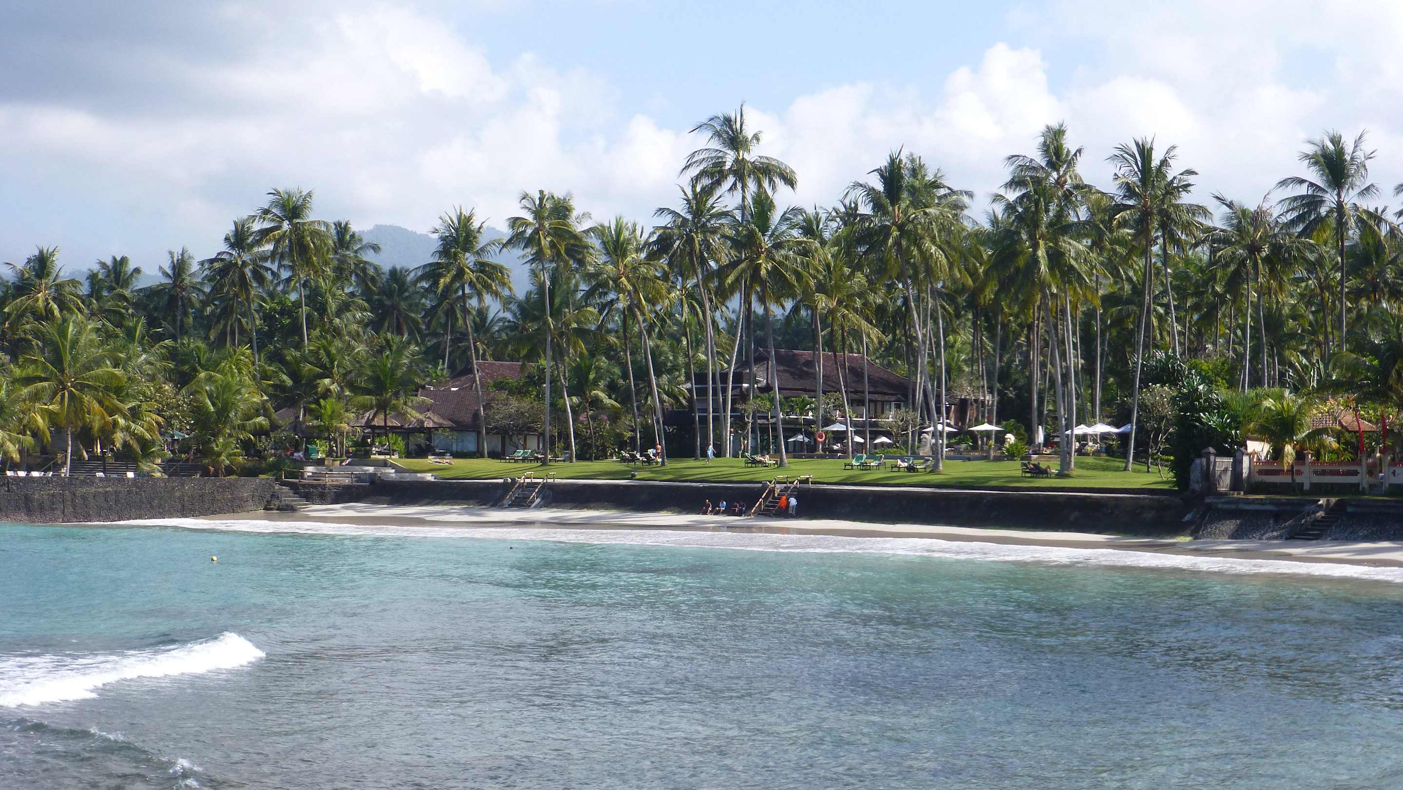 Vom Tempel schräg gegenüber, Strand und Hotel