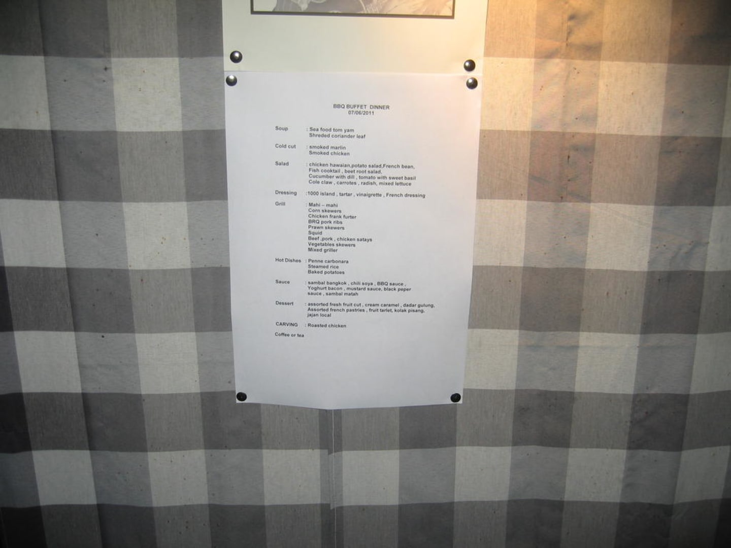 Menuplan für eines der Themenbuffet