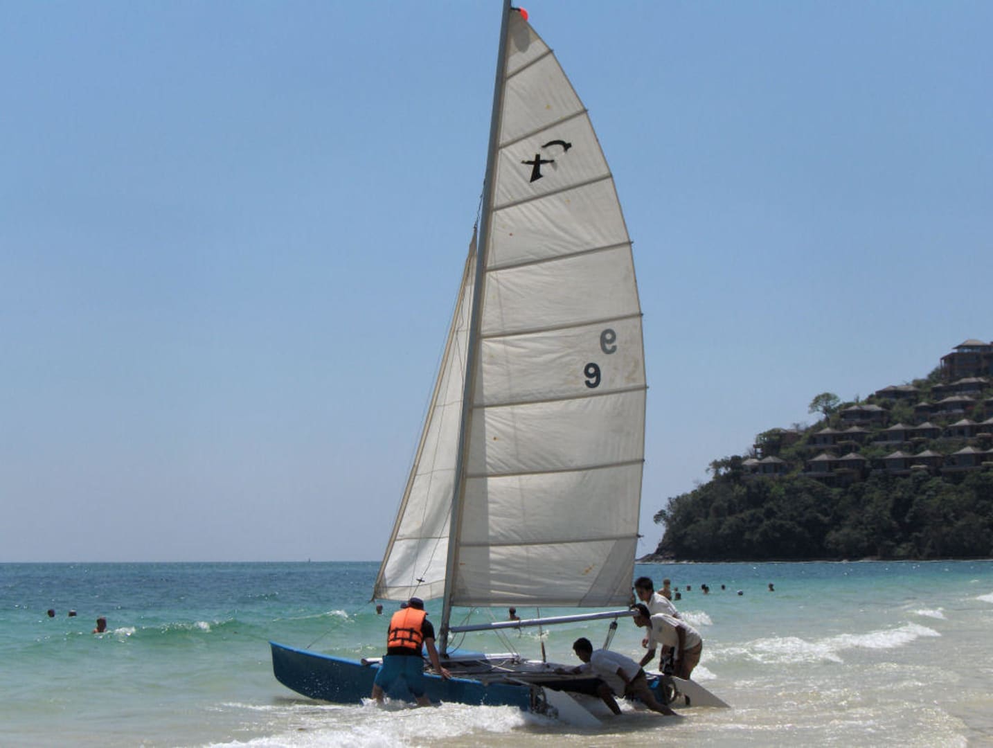 Katamaran aufgetakelt